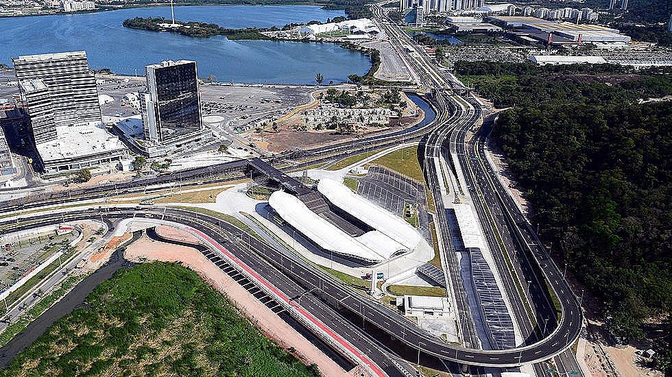 El proyecto del llamado Paseo Olímpico comprendía duplicar dos grandes avenidas ya existentes, pasando de cuatro a diez carriles, con dos de ellos, en hormigón, reservados en exclusividad para el transporte público brasileño. Además, se habilitó una calzada peatonal, un carril-bici y un nuevo espacio verde. La actuación se ha completado con la construcción y acondicionamiento de nueve paradas de autobús y dos nuevas terminales que sirven de interconexión entre el bus exprés -con una línea solo para exclusivamente a personal de los Juegos- y el sistema convencional de transporte. Para ello se tuvieron que levantar 17 puentes, 3 viaductos y cuatro pasos subterráneos,